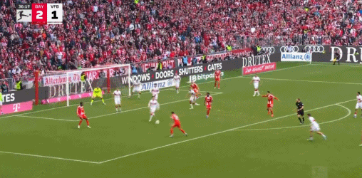 在弗里希为斯图加特破门之后,拜仁6分钟之内连入3球,格雷罗、杰克逊、戴维斯各入一球,拜仁以3比1的比分领先。替补出场的凯恩打入1球,斯图加特则在最后一刻打入1球。