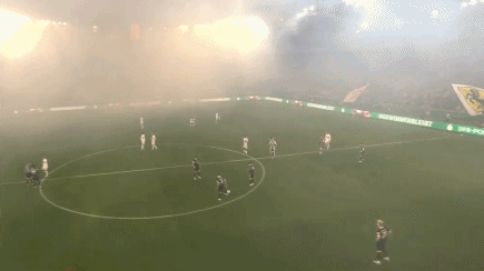 第1分钟,双方球员步入赛场,比赛即将打响