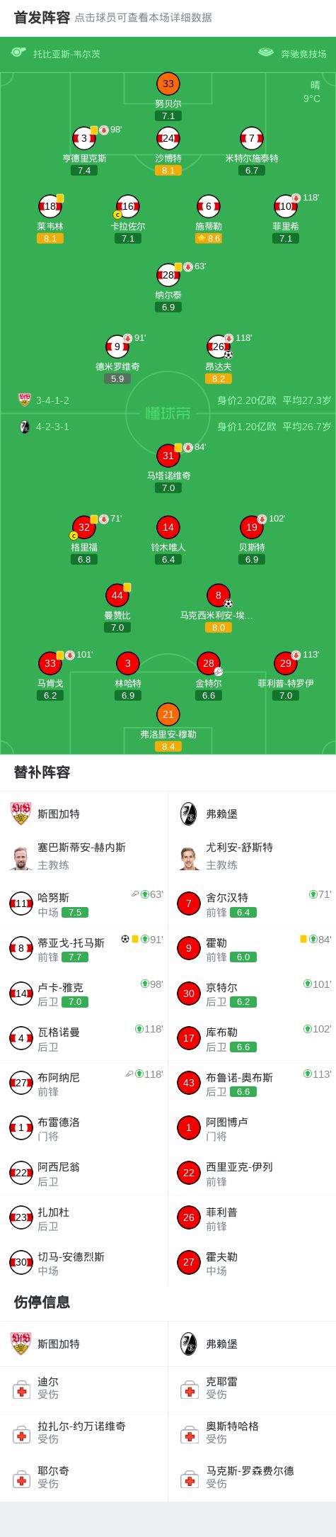 90分钟战报:斯图加特1-1弗赖堡,双方进入加时