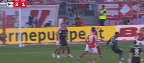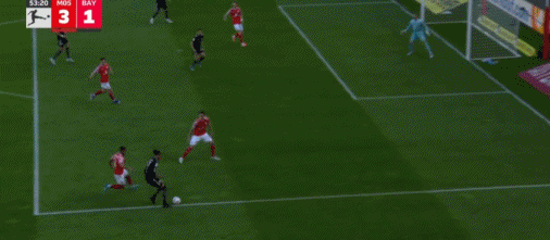第53分钟,莱默尔传中,雅克松凌空抽射破门扳回一球,拜仁1-3美因茨
