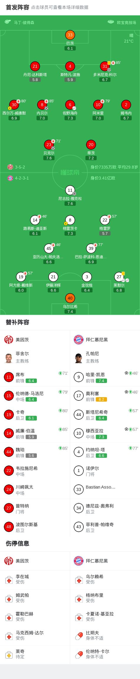 剑南春丨拜仁让三追四4-3美因茨,奥利塞、穆西亚拉、凯恩替补破门